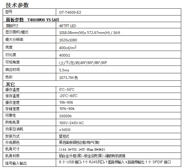 46寸壁挂式触摸一体机 GT-T4600-E2