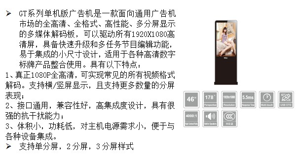 上一篇:42寸立地式单机版广告机 GT-A4200-...